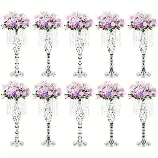 10pcs Metal Flower Vases Crystal Flower Stand Wedding Centerpieces For Tables Party Dinner Event Restaurant Hotel Decoration