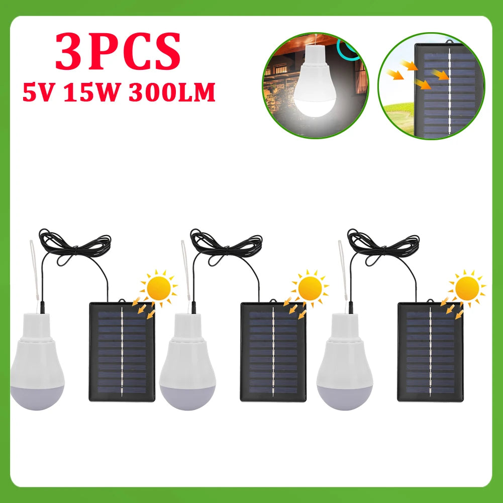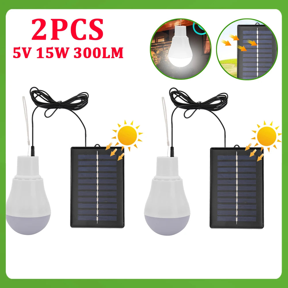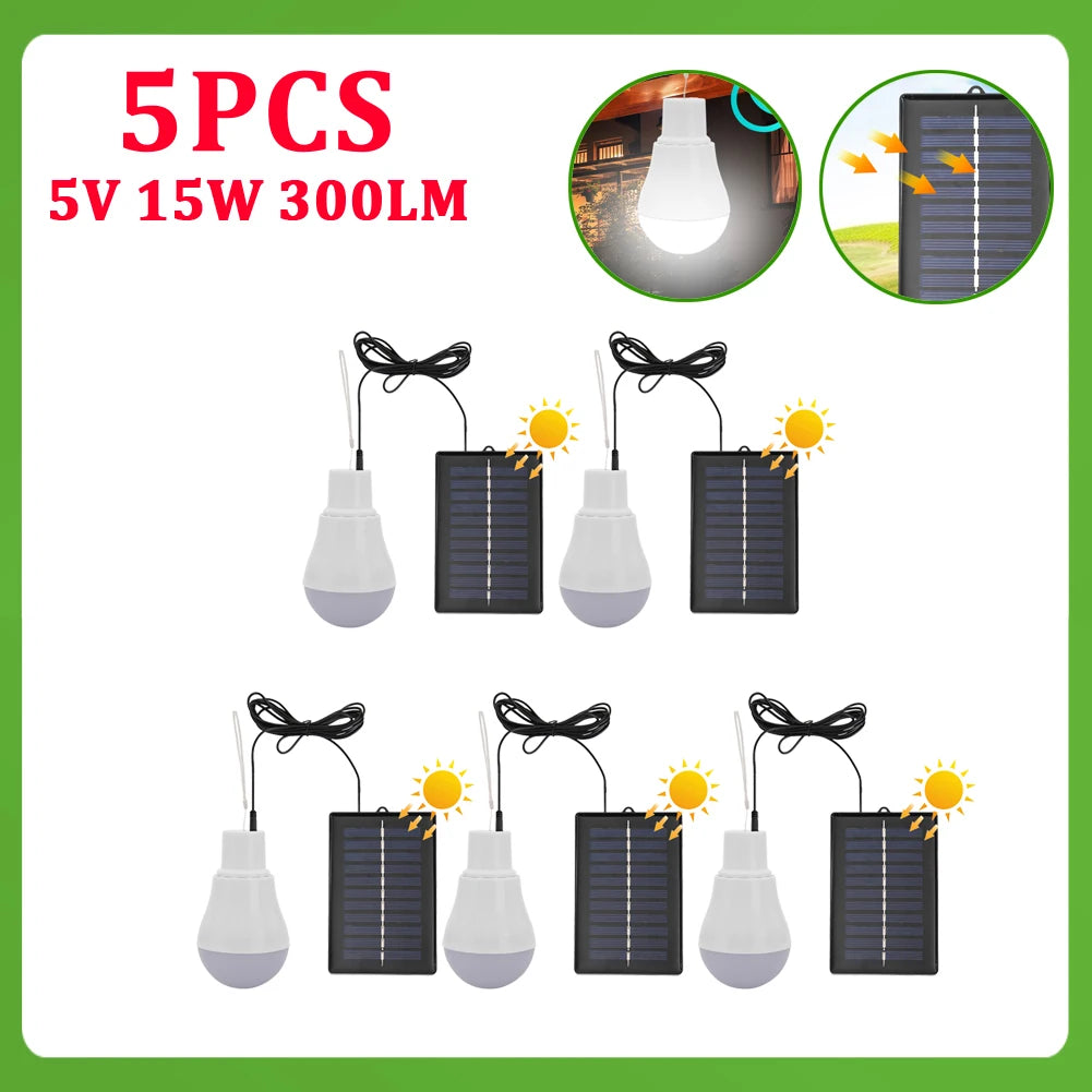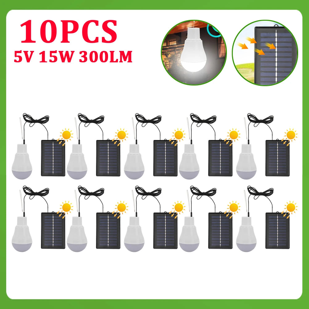 1-12pcs 5V 15W 300LM Solar Lighting Bulb Portable Solar Power Panel Battery Charger Energy Saving Outdoor Lamp USB Rechargable
