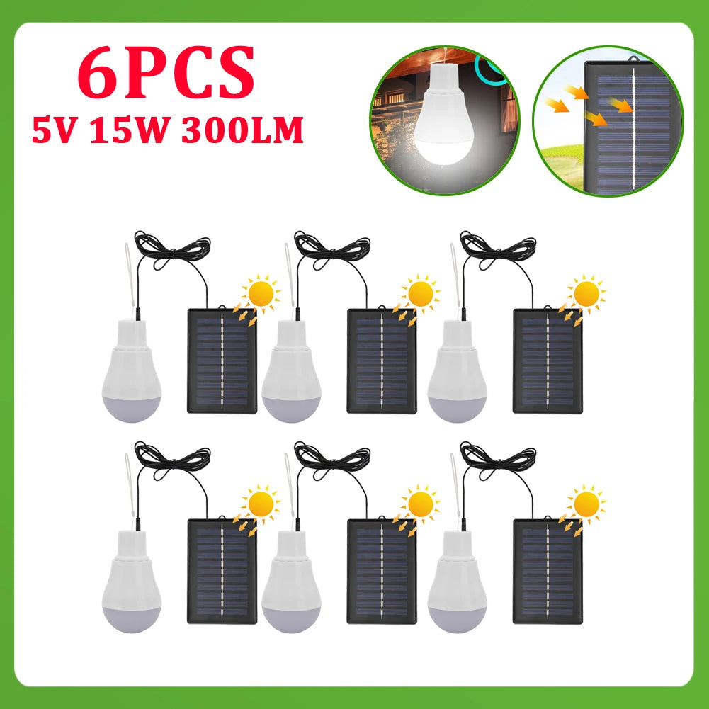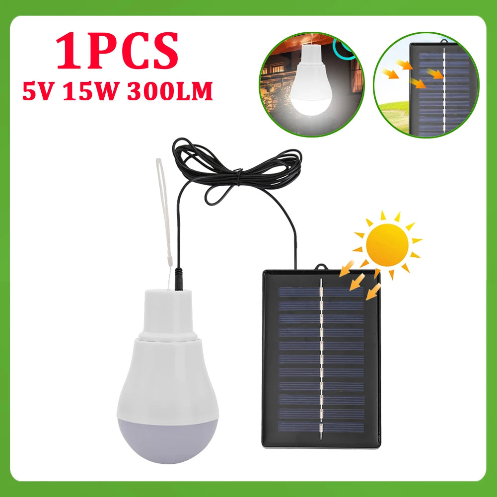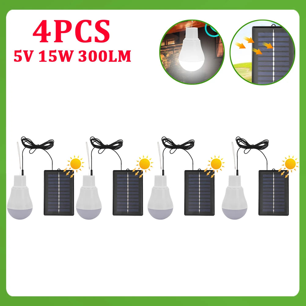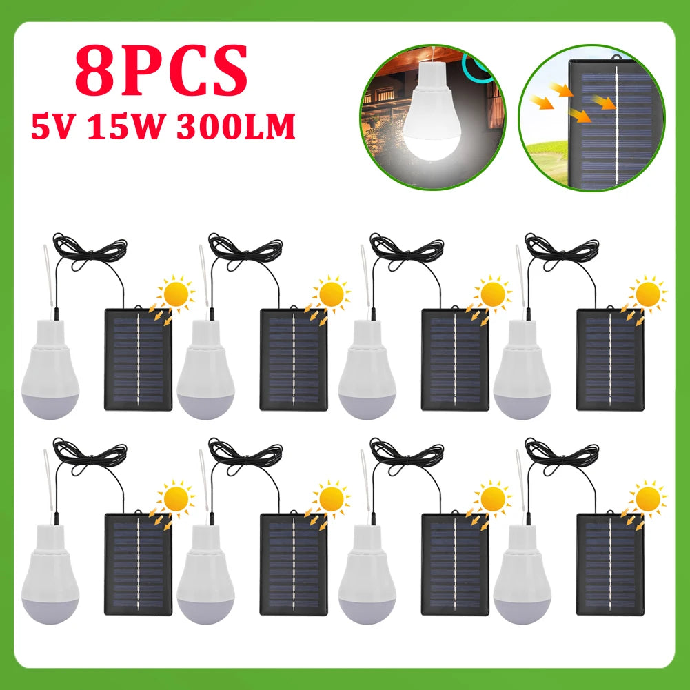 1-12pcs 5V 15W 300LM Solar Lighting Bulb Portable Solar Power Panel Battery Charger Energy Saving Outdoor Lamp USB Rechargable