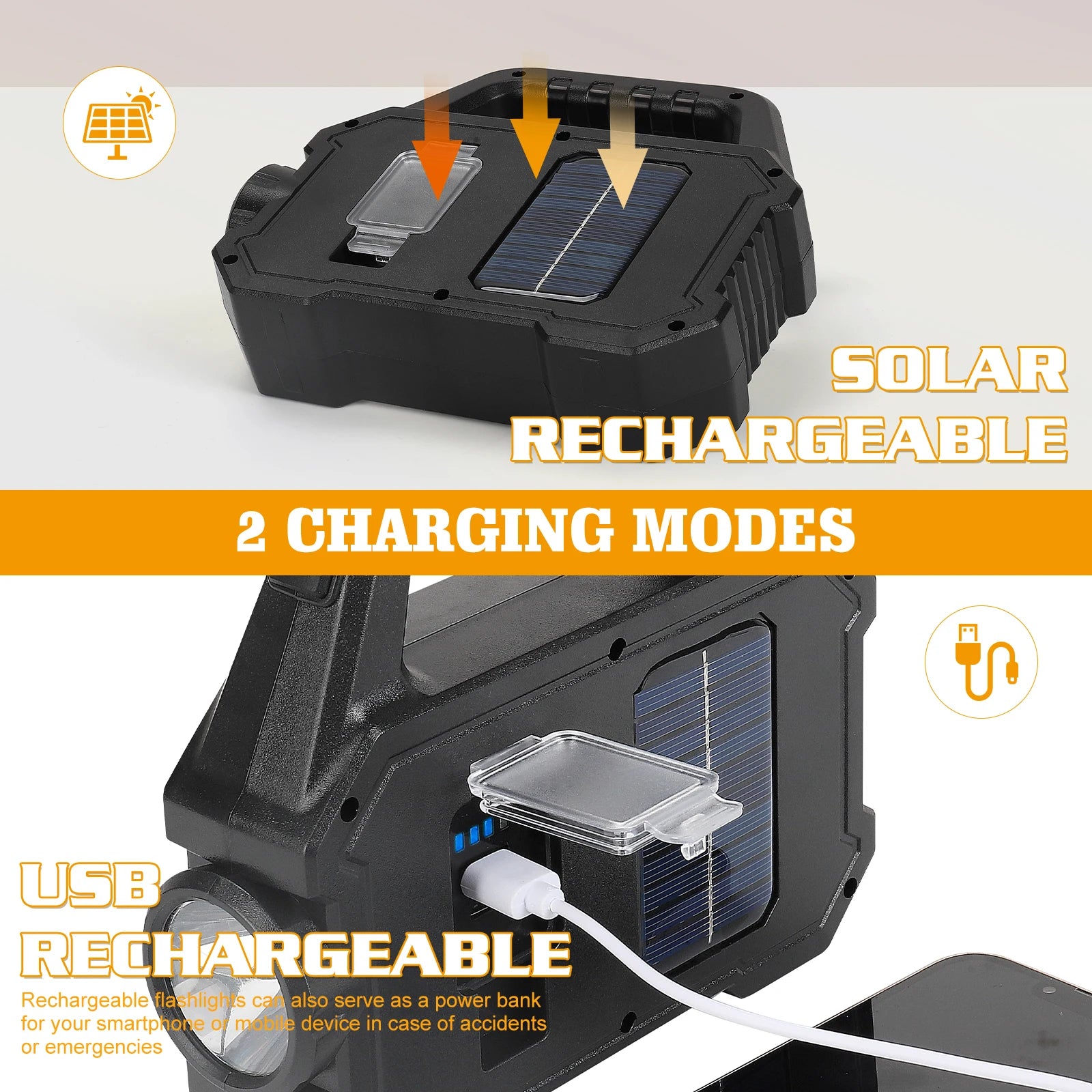 2000LM Solar-Powered LED Flashlight - Rechargeable Camping/Work Light with 6 Modes, IPX7 Waterproof for Outdoor Emergency Hiking