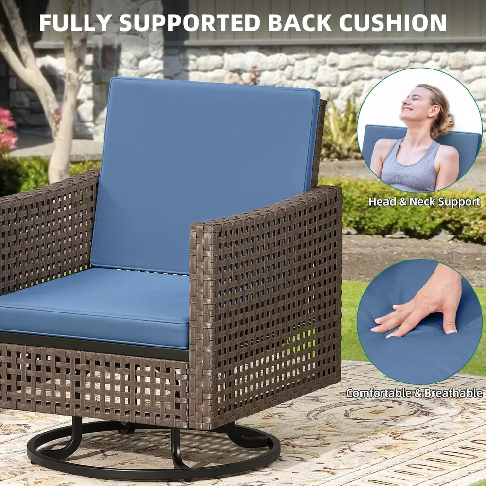 - Sooth 360° Swivel & Glide: Gently rock the swivel chair or swivel 360° to enjoy the view from your backyard and enjoy chatting with friends. Relax in handwoven rattan patio furniture set and bring elegance to your outdoor patio, yard