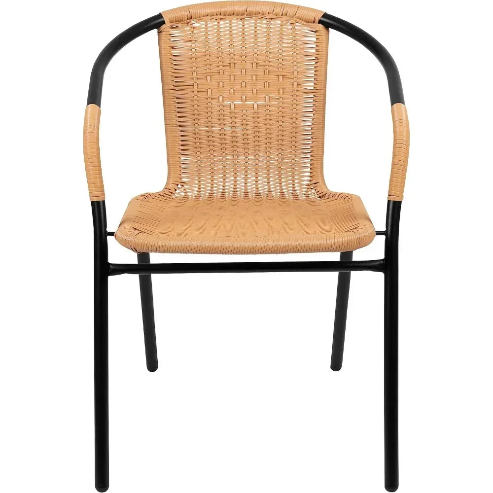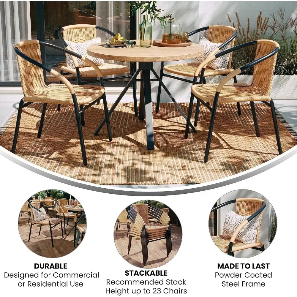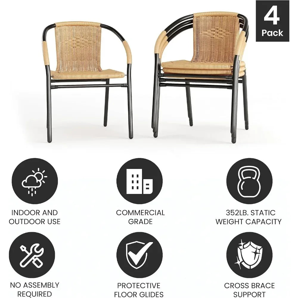 4 Pack Beige Rattan Indoor-Outdoor Restaurant Stack Chair with Curved Back