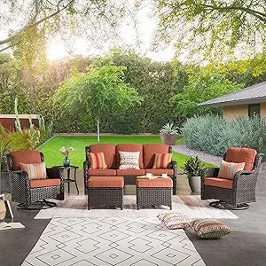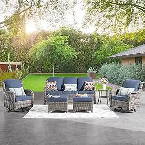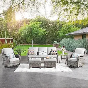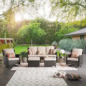 6-Pieces Patio Furniture Set with Swivel Chairs, Outdoor Wicker Sofa Couch Gliders Rocker Comfy Cushions, Modern High Back Conv