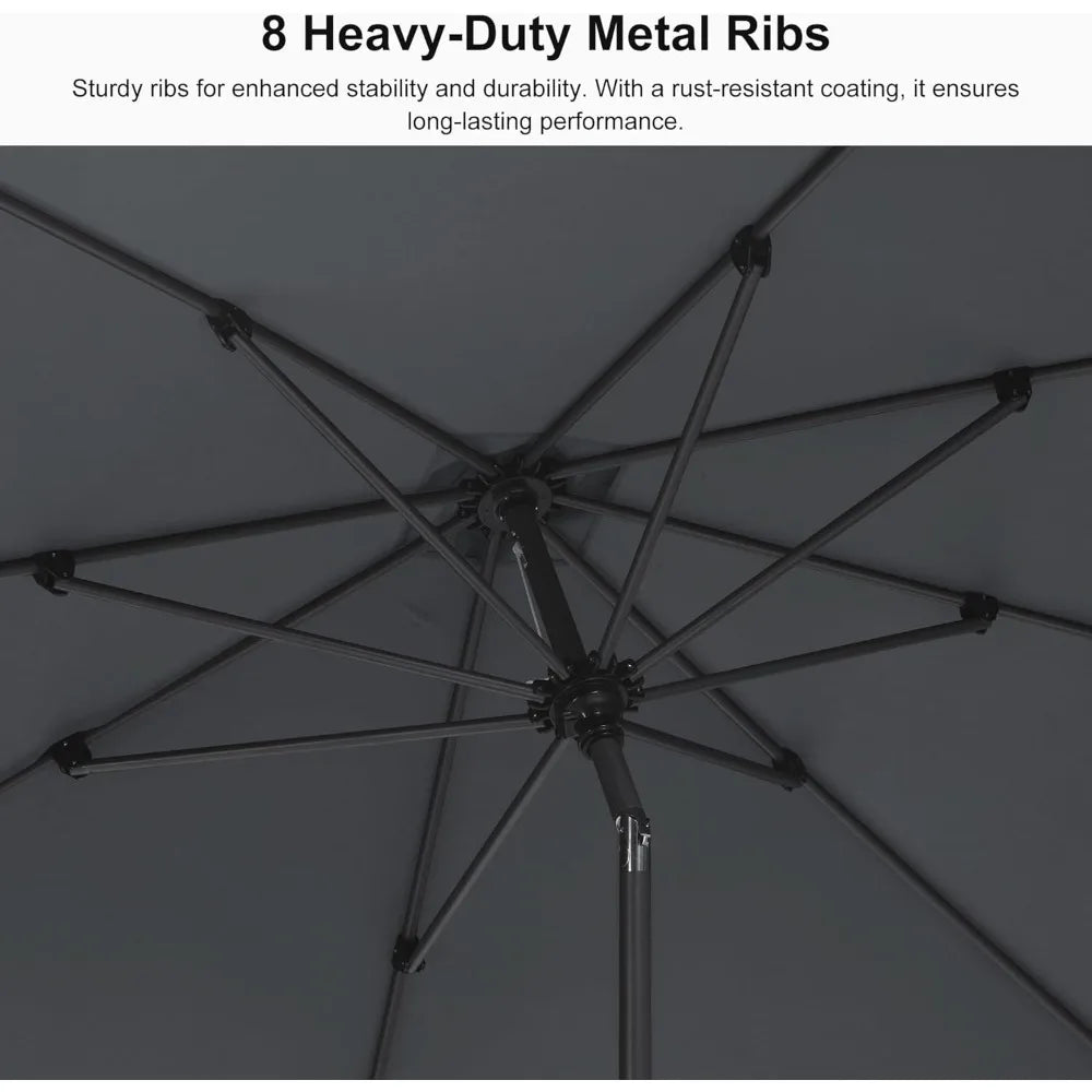 - Reinforced Aluminum Frame: The umbrella frame reinforced with eight powder-coating aluminum ribs provides a robust and stable structure to ensure durability, reliable performance, and rust resistance.