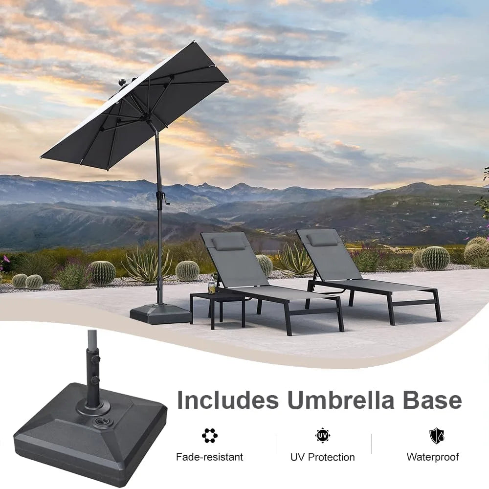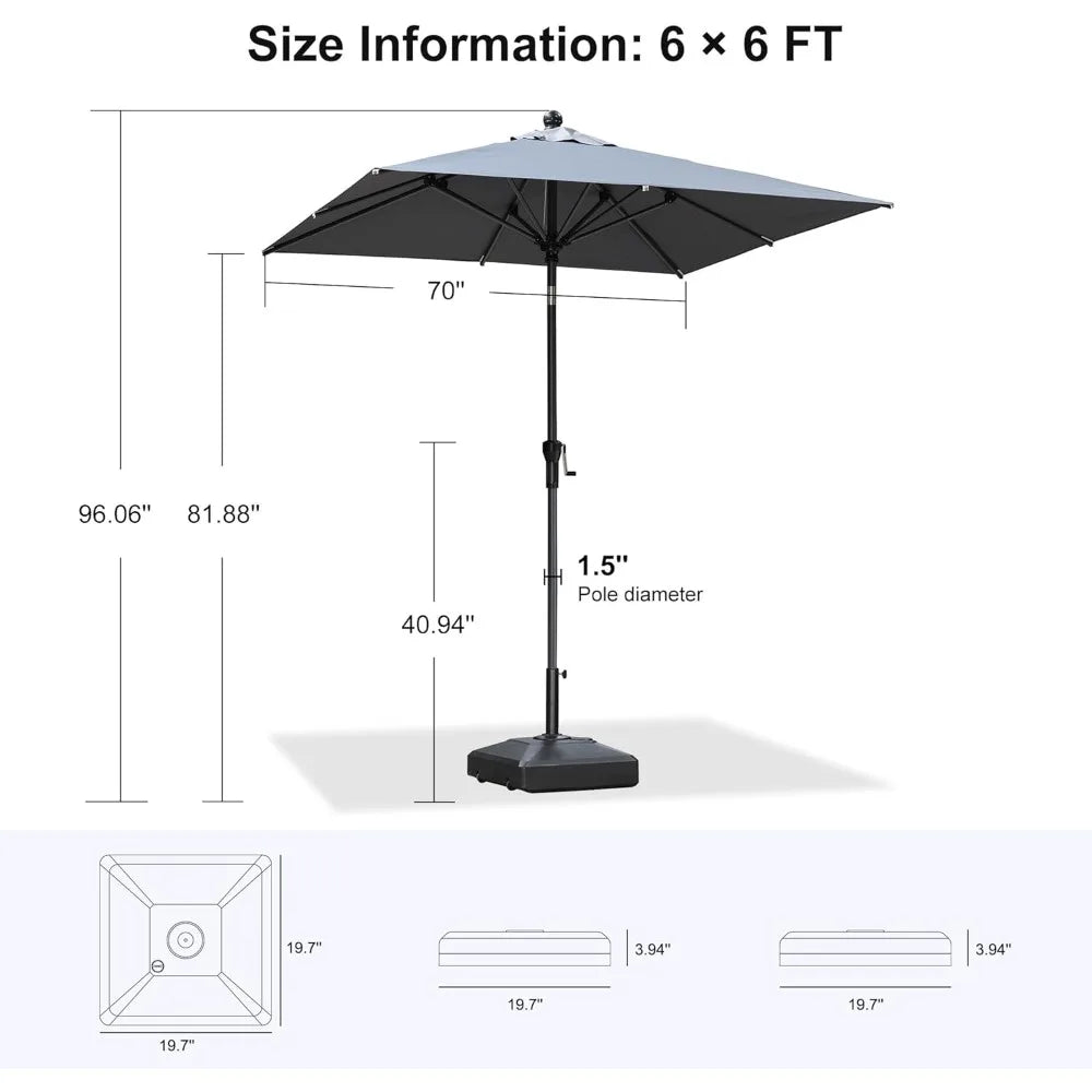 6' x 6' Square Patio Market Umbrella with Base Outdoor Table Umbrellas Aluminum Frame Sun Shade with 8 Sturdy Ribs Tilt for Gar