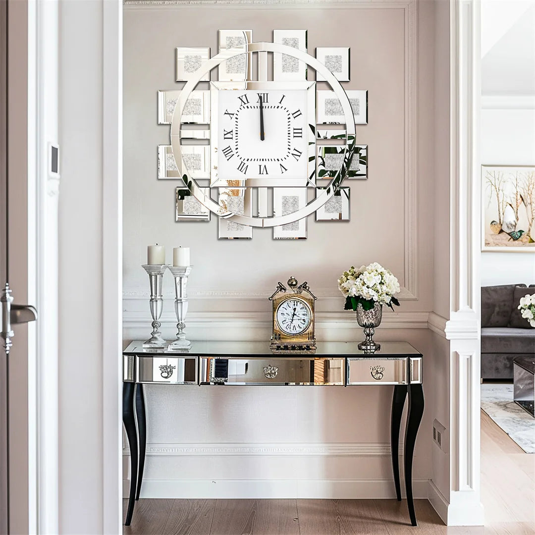 【Distinctive Timepiece】This newly wall clock boasts mirrored glass frame adorned with crushed diamonds inlay, effortlessly brings modern styling into play, elevating its overall design, this exquisite detailing not only makesit not just a functional item but also ensure that the clock becomes a visually captivatingand eye-catching focal point within any rooms