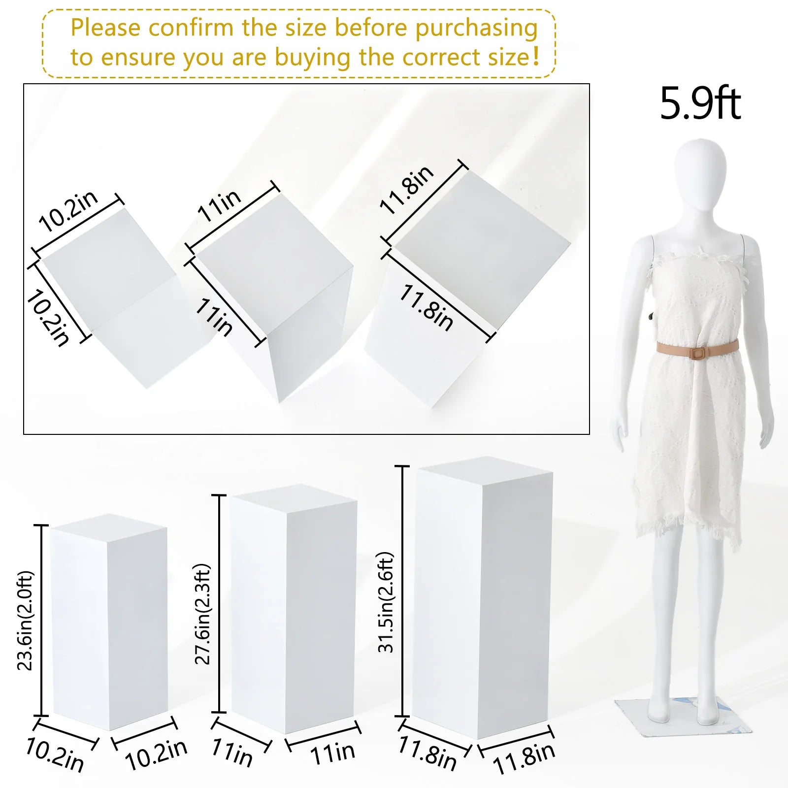 [Size]--- Pack of 6 different size stands.2*Small: 23.6in-H*10.2in-W*10.2in-W,(:8.8lb); 2*Medium:27.6in(2.3ft)-H*11in-W*11in-W, (11lb); 2*Large: 31.5in(2.6ft)-H*11.8in-W*11.8in-W,(13.5lb). Please select suitable heights based on different needs and occasions.