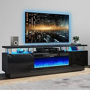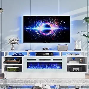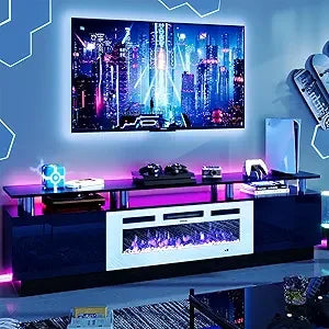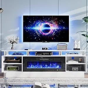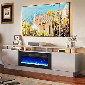- TV Stand with 36" Fireplace: 80"L stand integrates twelve colors electric fireplace with five dimmer levels & thirty-six colors LED color combos for a customizable viewing & heating experience