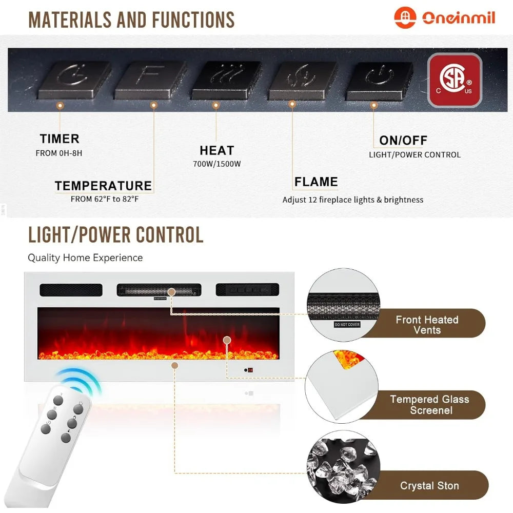 - Safe & Energy-Efficient Fireplace: Adjustable temp range (62-82°F) with overheat protection & auto shut-off timer, CSA&ETL certified