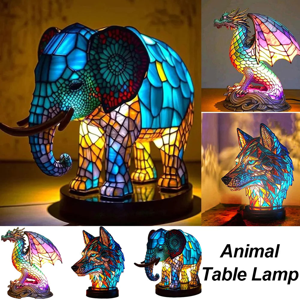 Illuminate your space with the stunning Animal Resin Table Lamp Series, featuring enchanting designs of a wolf, elephant, and more. Perfect for your bedroom, living room, or office, this unique bedside night light adds a touch of elegance and whimsy to any decor.