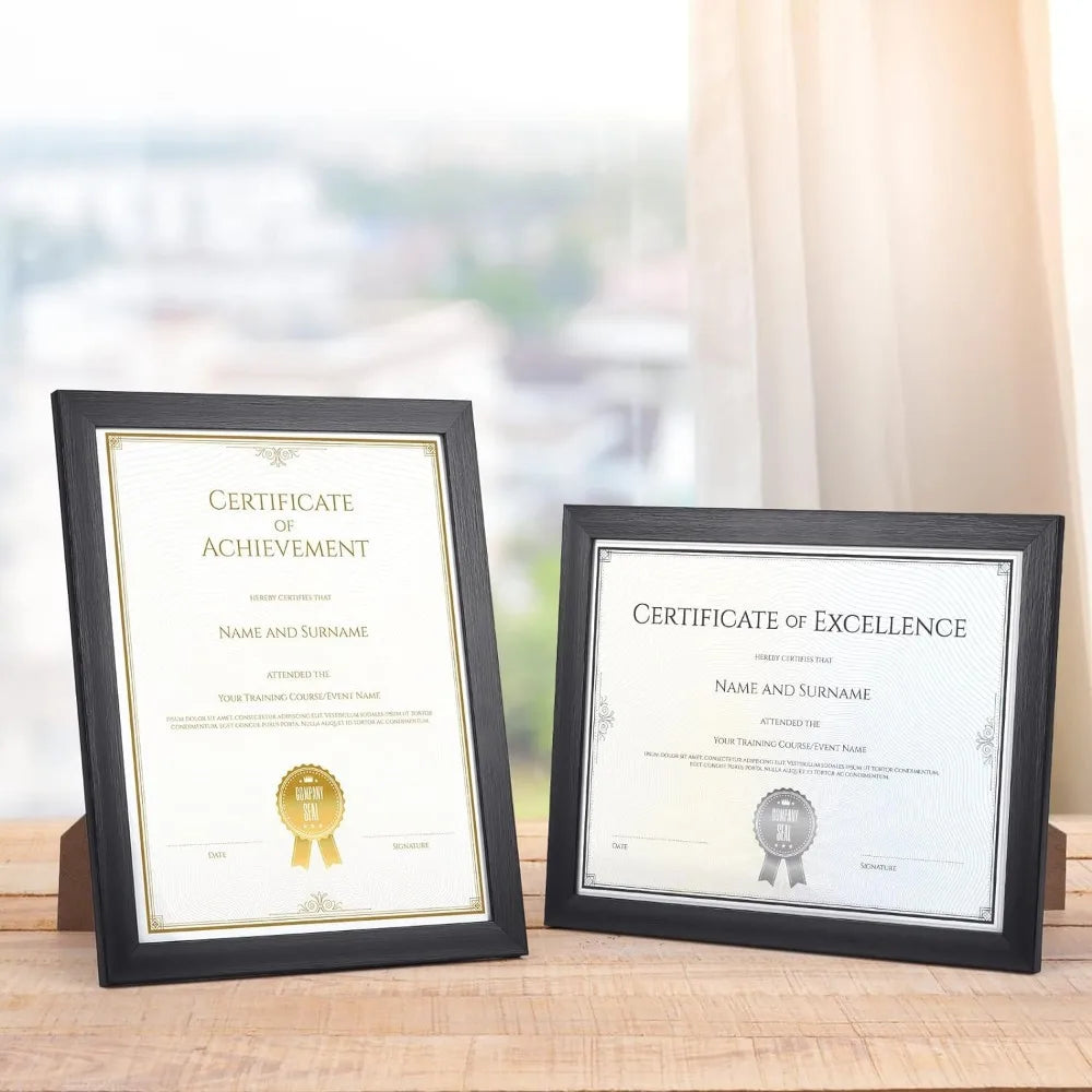 - Contemporary Aesthetic: Featuring a sleek black wood grain finish, these frames blend seamlessly with any decor style, making them a stylish addition to your home or office.