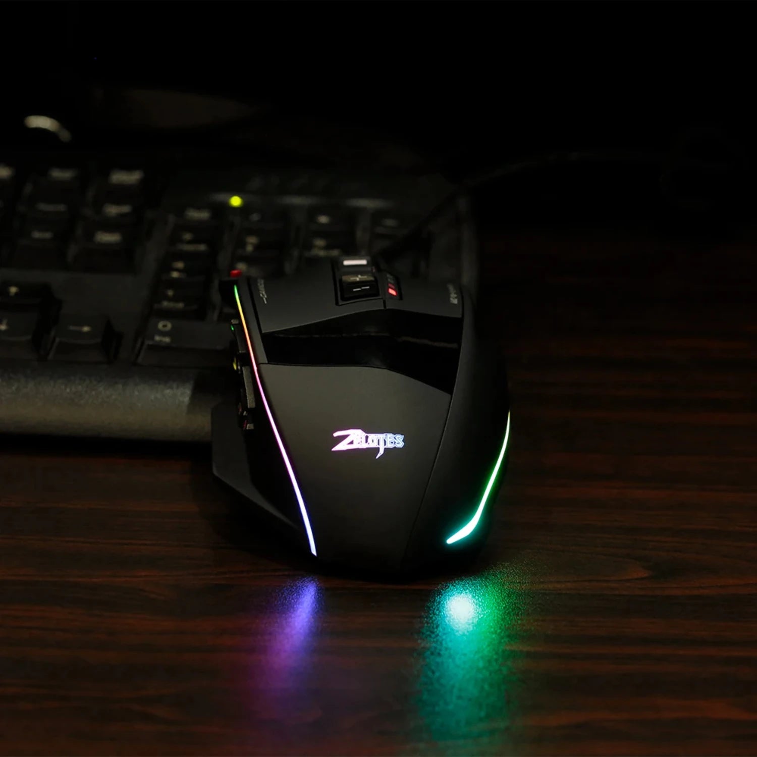 C-13 Wired Gaming Mouse 13 Keys 10000DPI RGB Light Mouse Belt 128KB On-board Memory Built-in Counterweight Mechanism