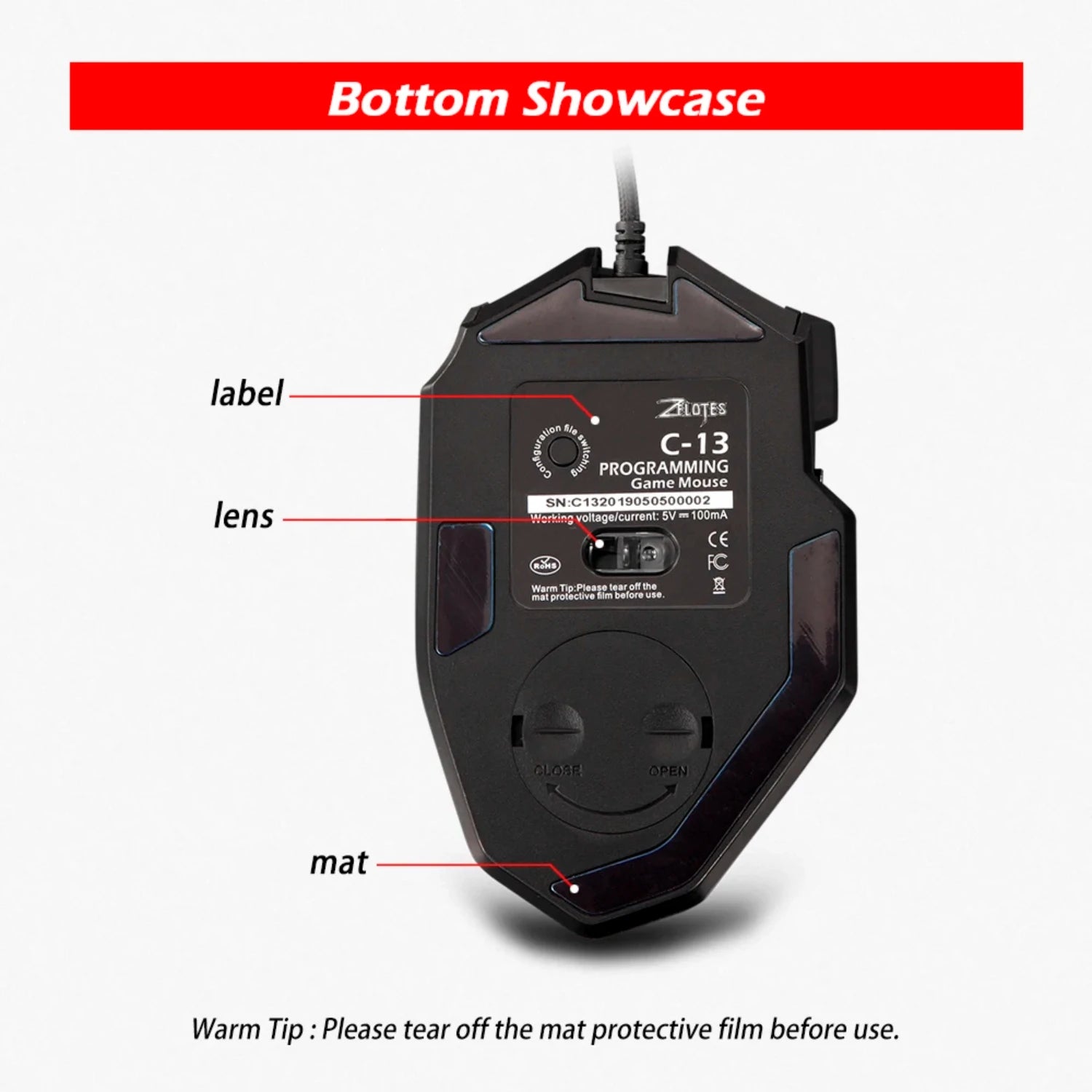C-13 Programming Gaming Mouse is specially designed for game enthusiasts, with macro programming functions, for precise positioning, comfortable operation, high reliability and operation fun.