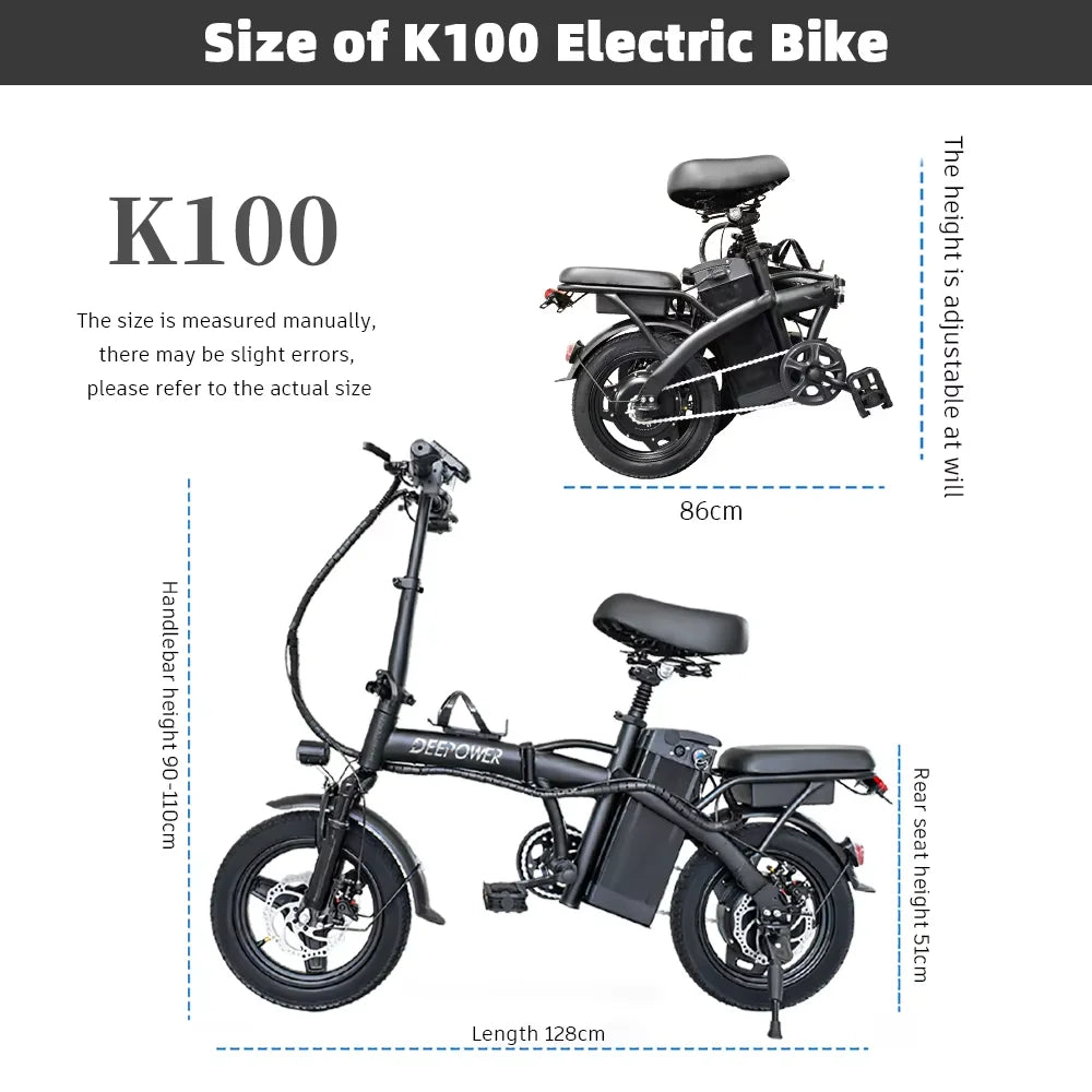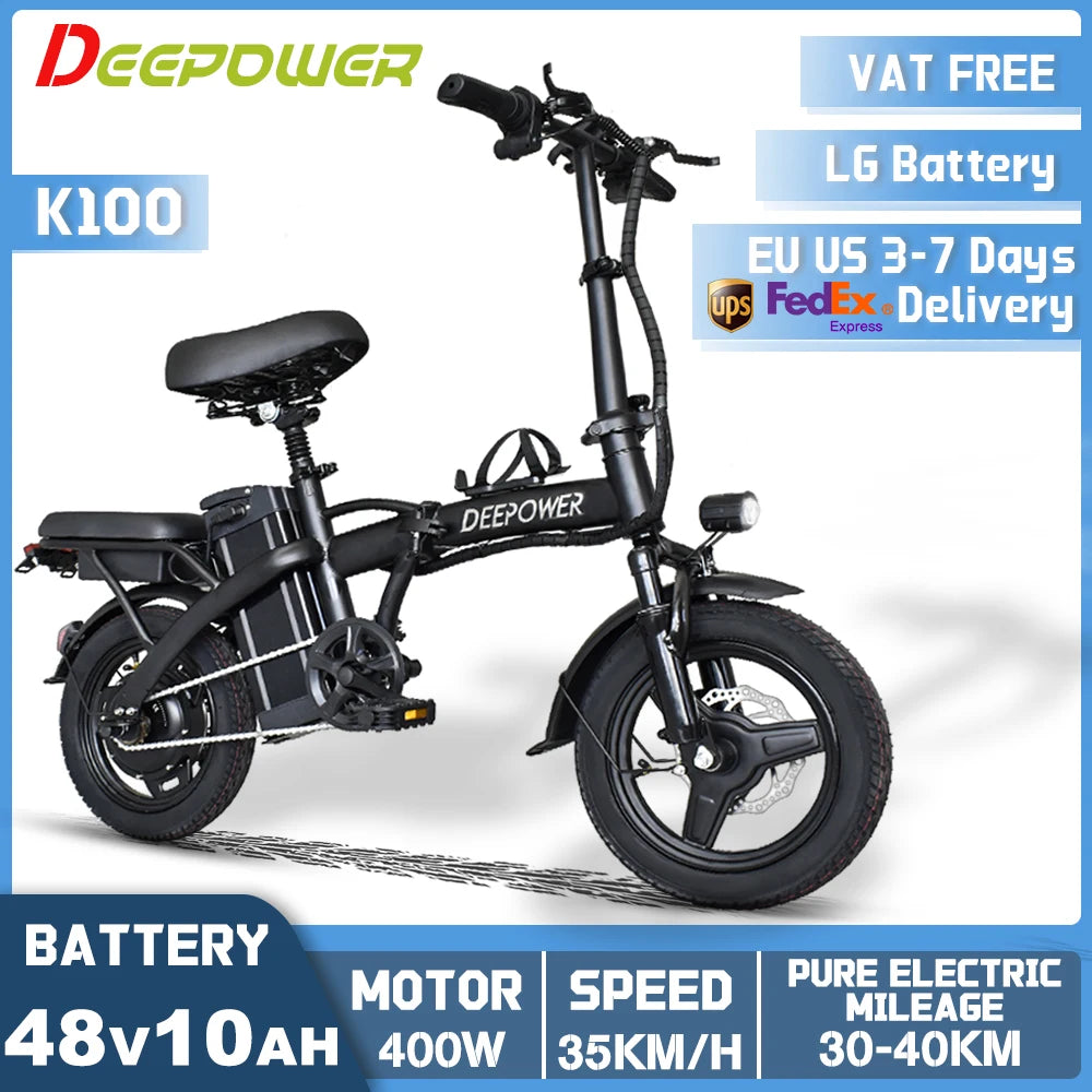 DEEPOWER K100 Electric Bike 400W 48V 10AH/30AH Foldable Adult Mini Ebike for City Commuters, Urban Commuting Electric Bicycle