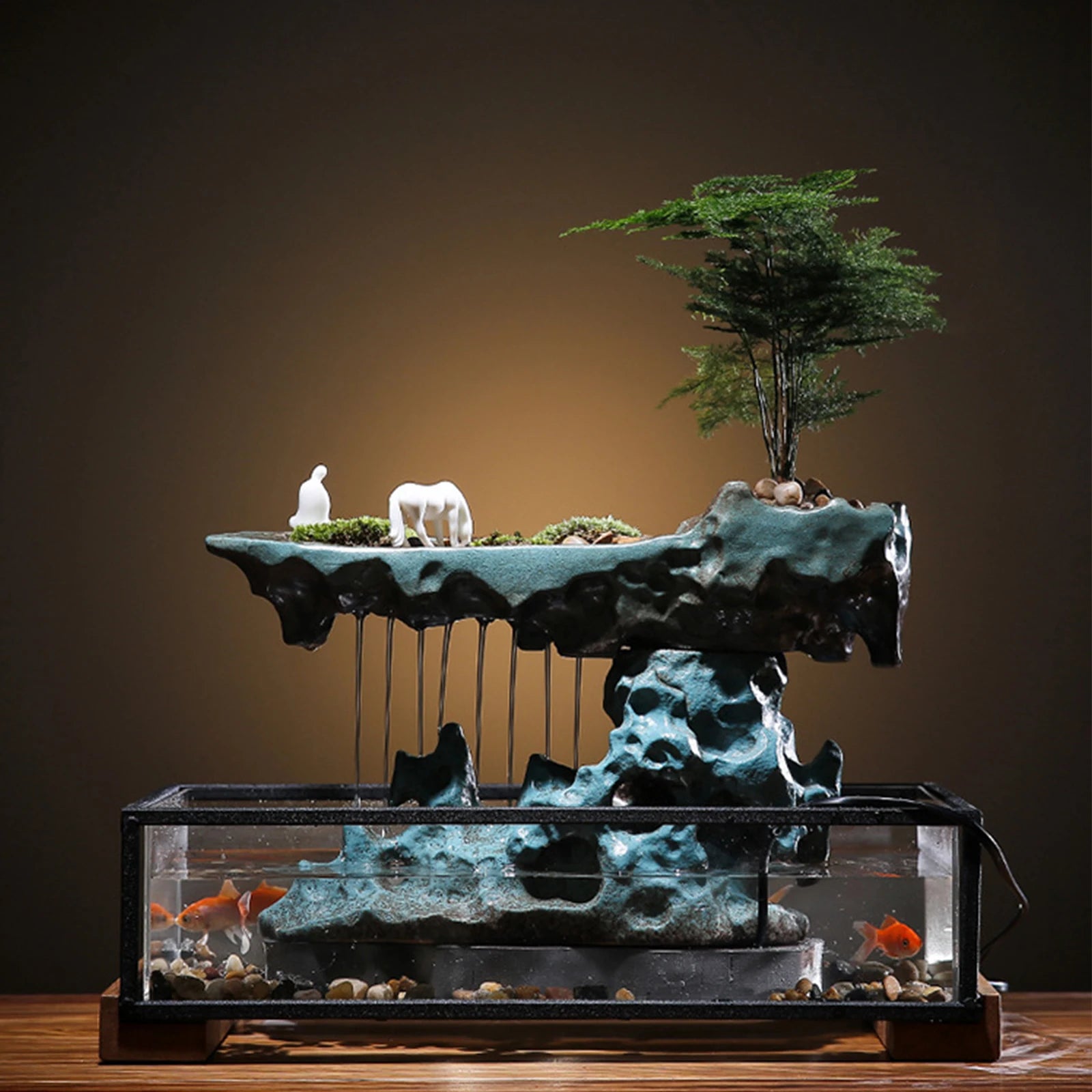 - Versatile Use: Ideal for the living room, bedroom, office, or coffee shop, it enhances your space while also allowing you to cultivate plants beside the rockery or keep small fish in the aquarium base.