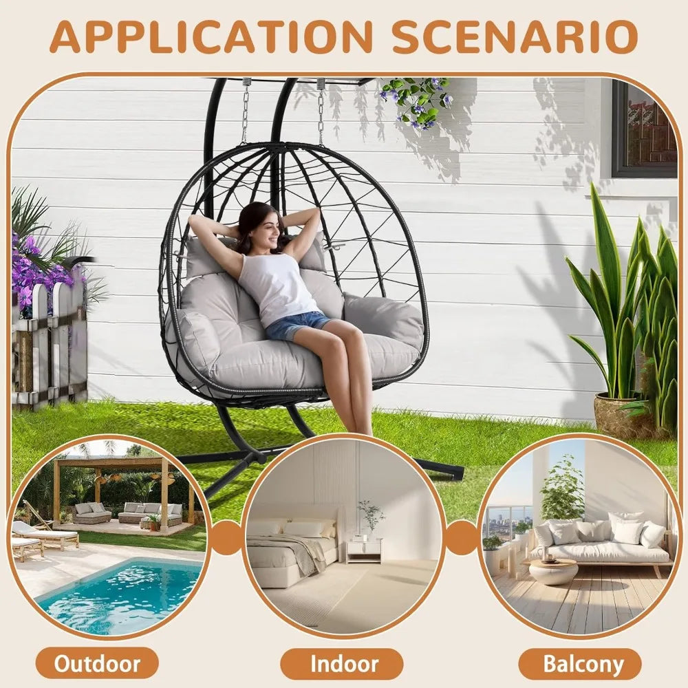 - 【Versatile Indoor & Outdoor Use】Whether placed in your living room, bedroom, balcony, or backyard, this stylish egg chair blends seamlessly with any décor. The foldable stand allows for easy storage and portability.