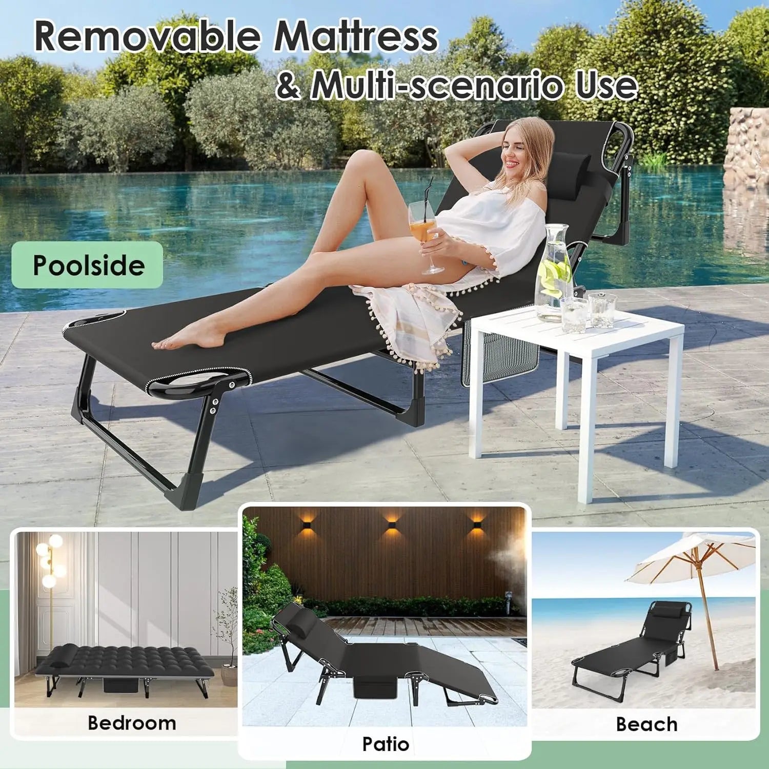 Adaptable to Varied Needs-- Camping beds for adults boast a modern or stylish appearance and design, adding a touch of distinctive decor to indoor spaces. Whether accommodating changing needs among family members or unexpected guests, it effortlessly meets seating and sleeping demands across various scenarios. Moreover, it serves as an excellent choice for relaxation during road trips, by the swimming pool, lakeside, in RVs, camping sites, on terraces, decks, in tents, or cabins.