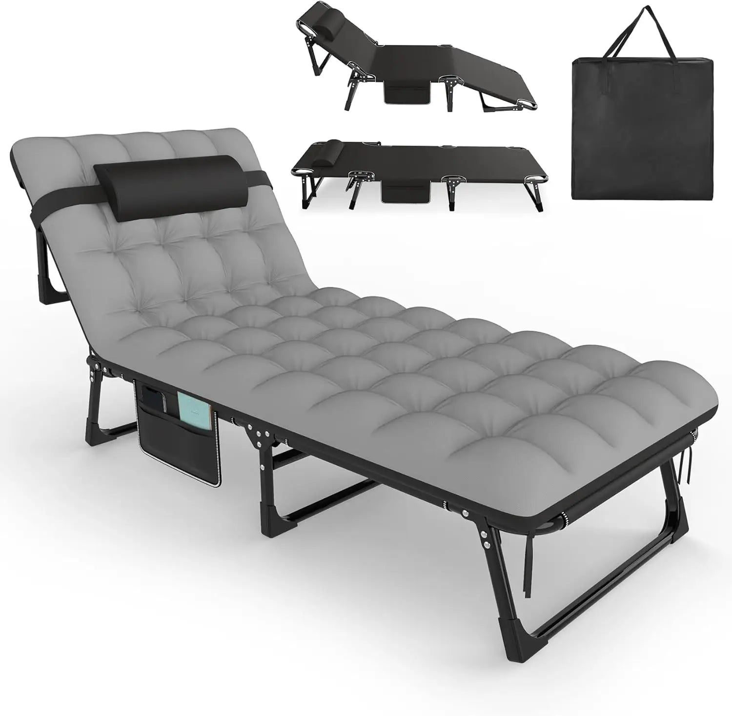 Folding Camping Cot for Adults, 5 Positions Adjustable Outdoor Cot Bed, Lounge Chair Cot, Travel Camp Cots with Mattress