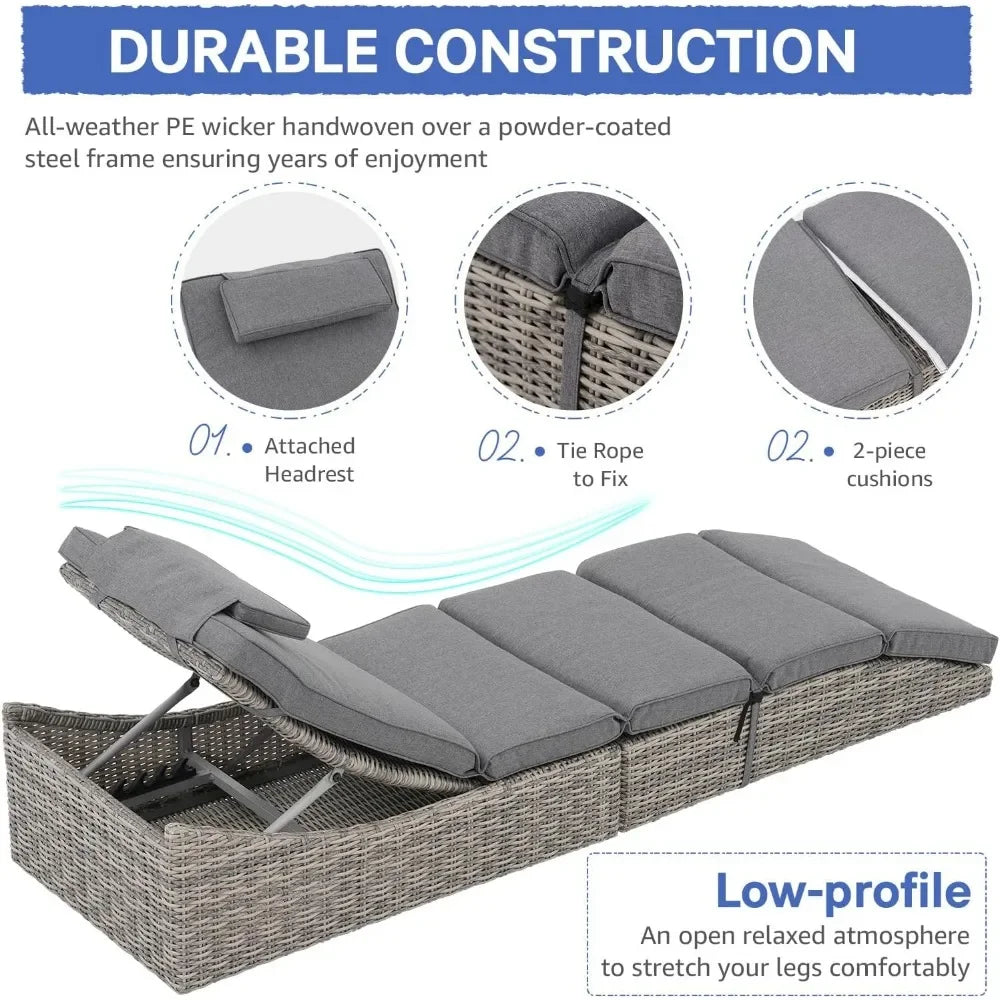 【DURABLE CONSTRUCTION】: Made of half-round resin wicker and powder-coated steel frames, the patio lounge chair is durable and has a long lifespan. The soft cushion provides a comfortable feeling when lying and a headrest pillow comes with it.