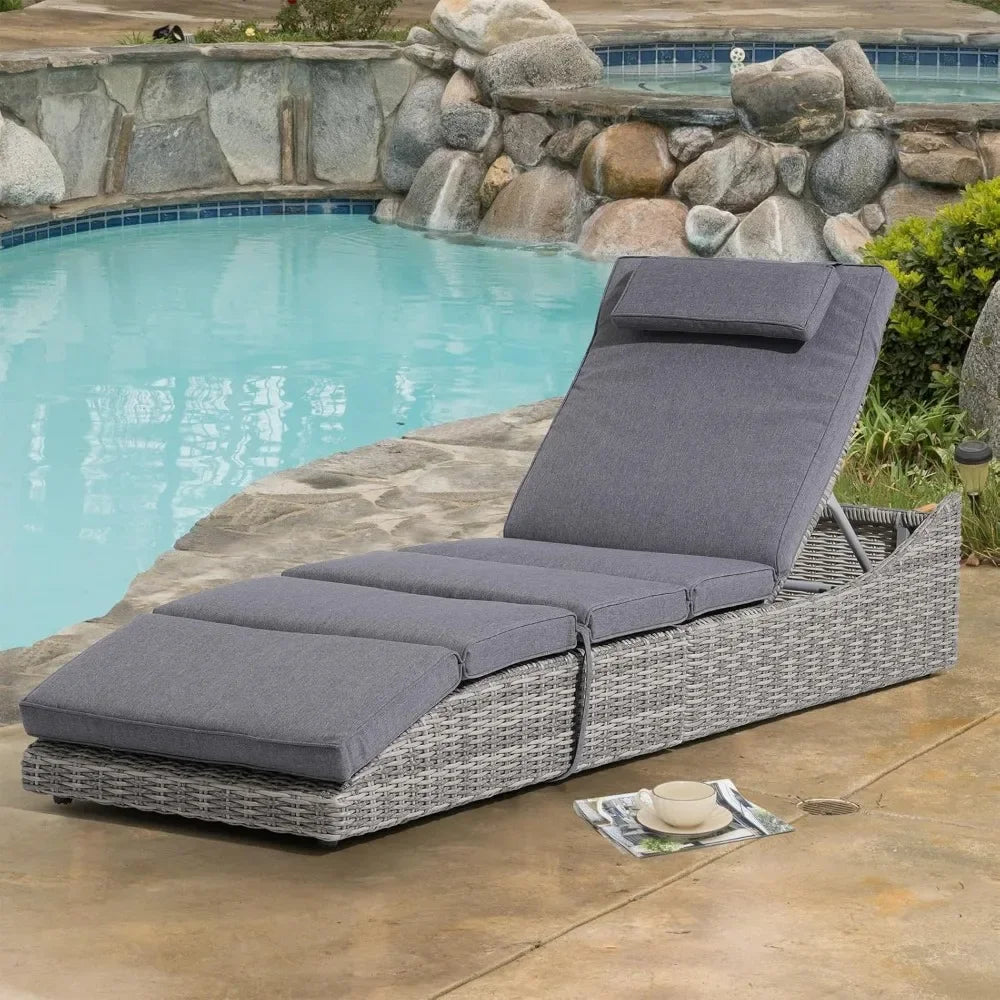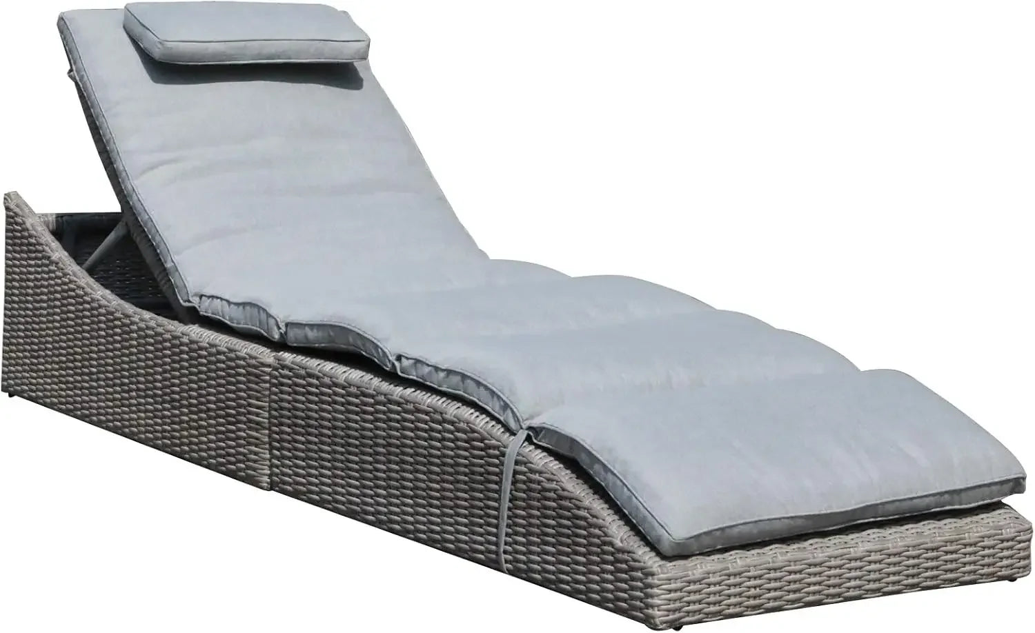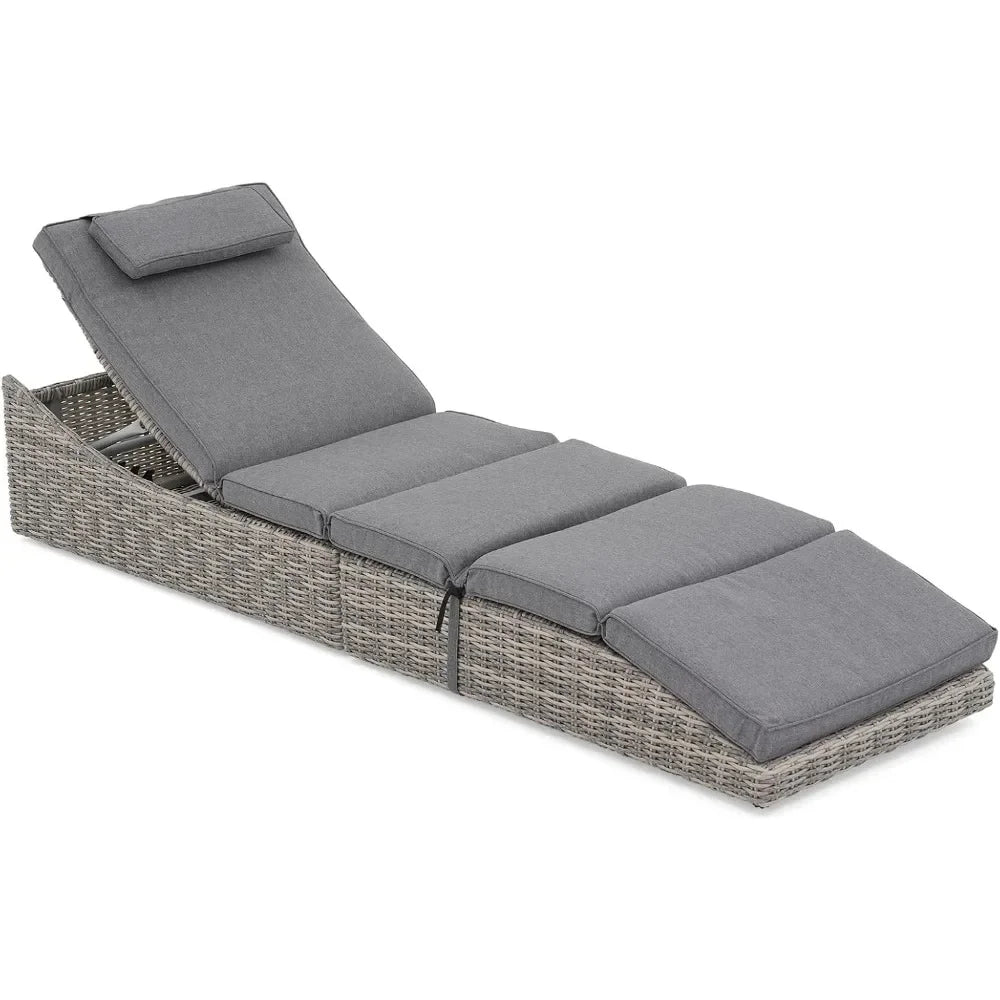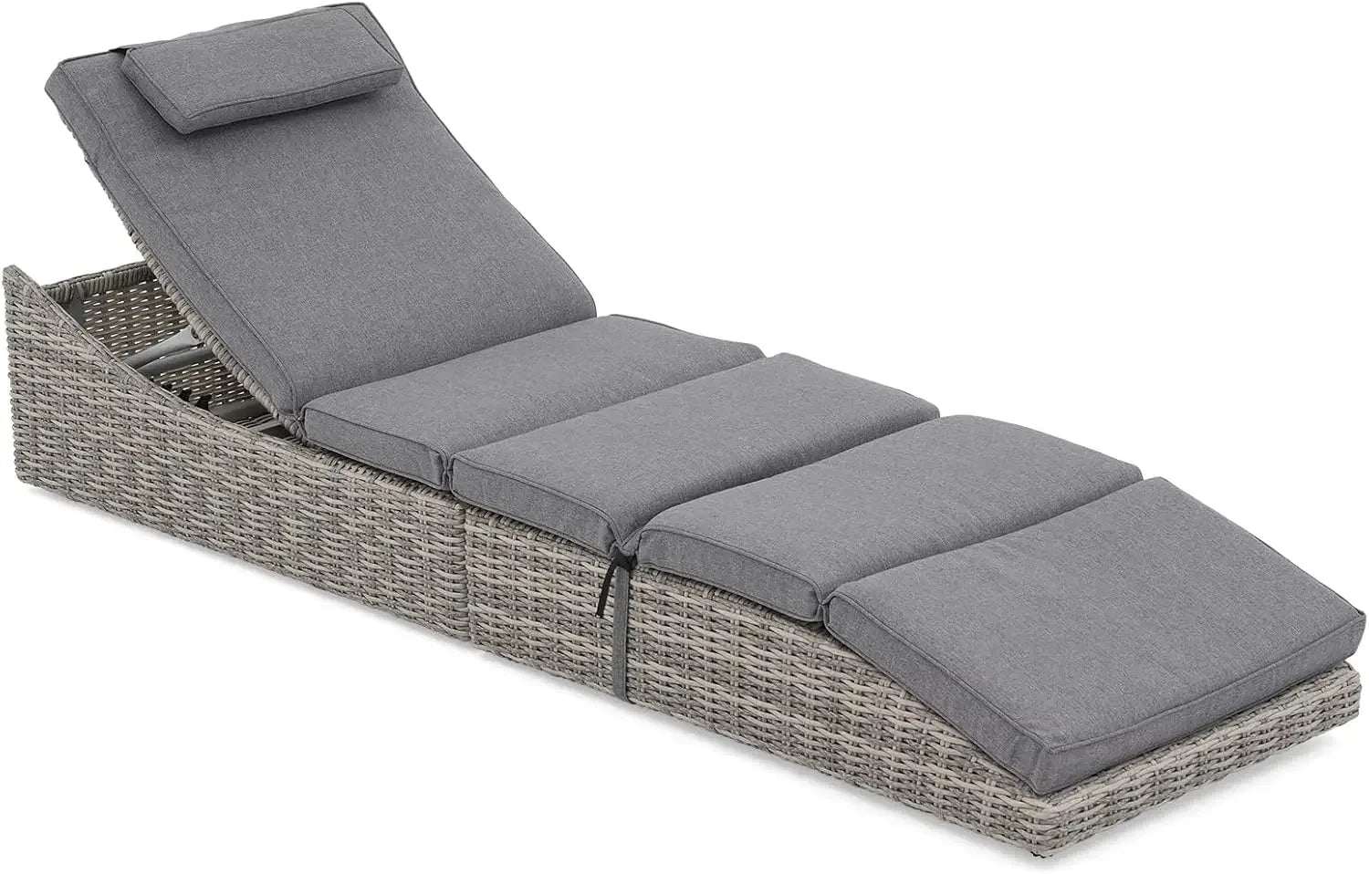 Folding Outdoor Adjustable Chaise Lounge Chair with Removable Cushion, Fully Assembled, Patio PE Rattan Reclining Lounger