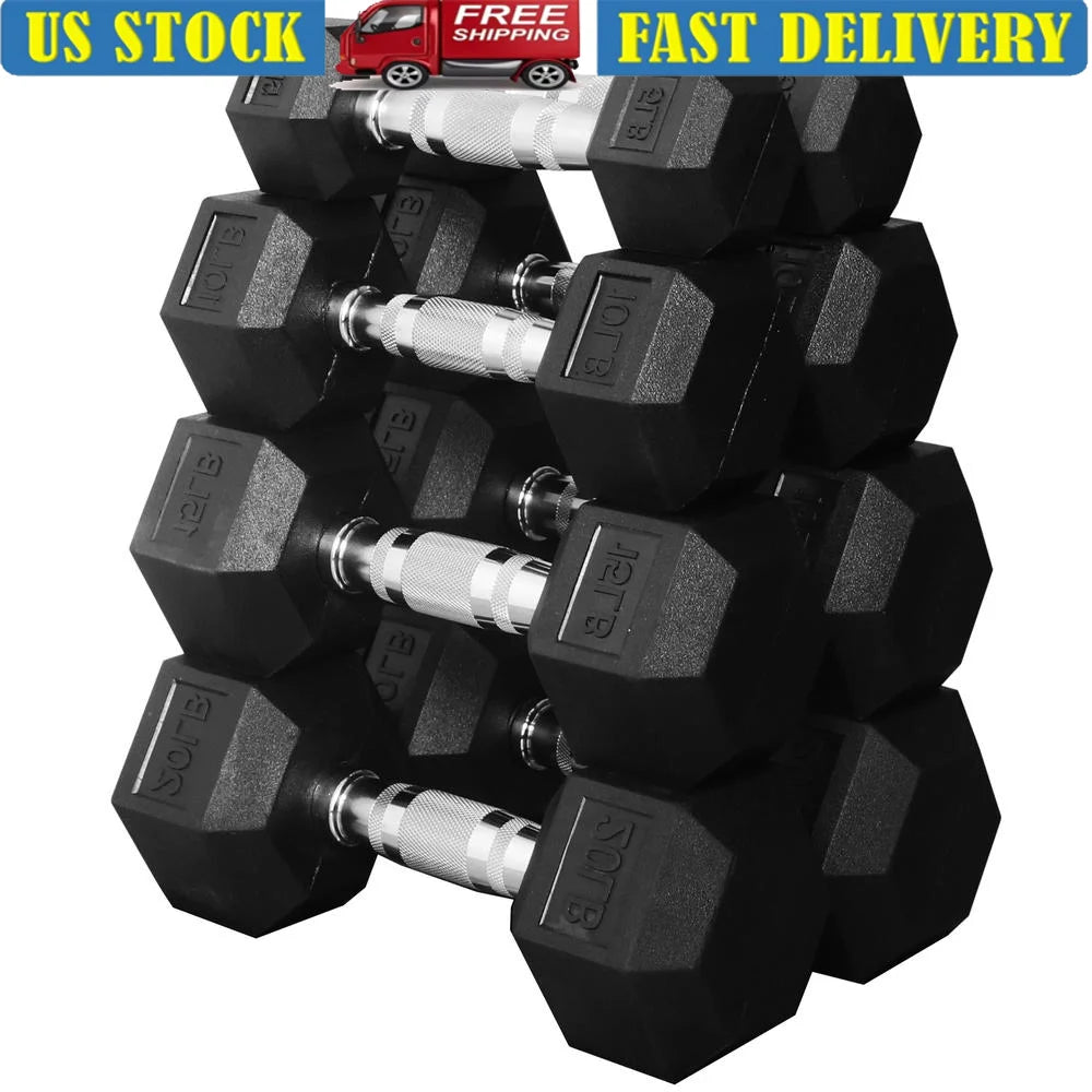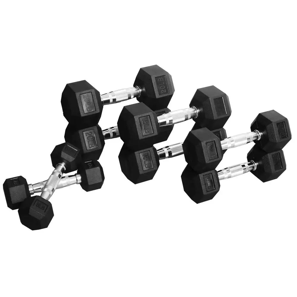 Hex Dumbbell Set 5 10 15 20 lb Durable Rubber Encased Grip