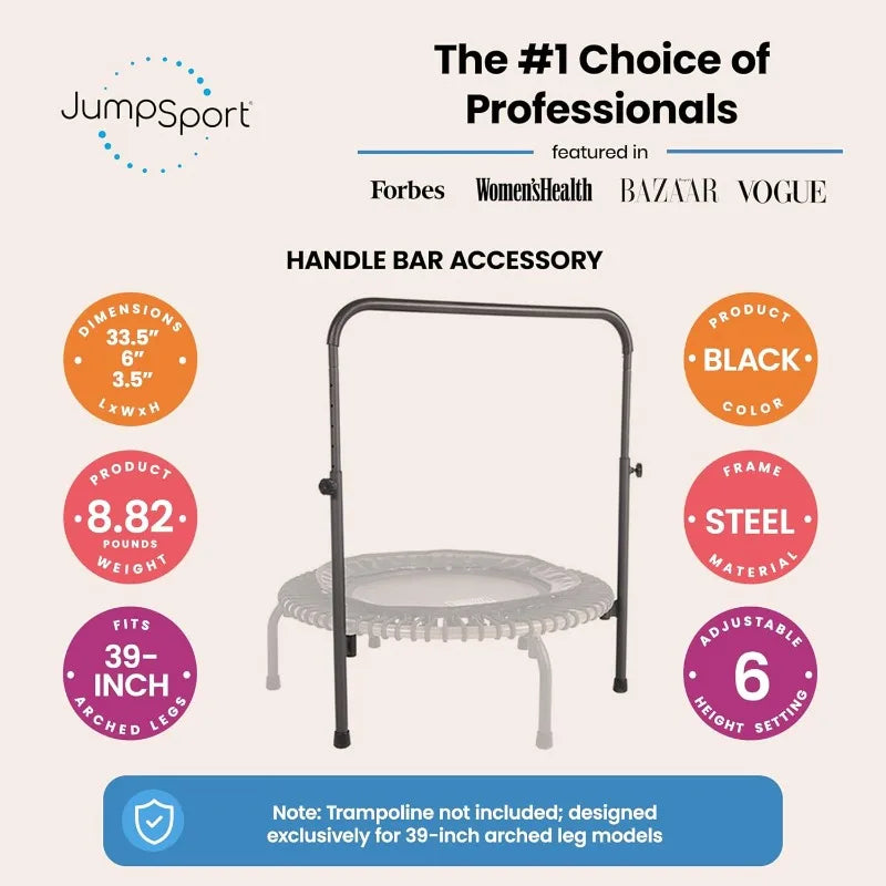 - Enhance your arched leg fitness trampoline with this sporty handlebar set. It's designed to complement the JumpSport Fitness Trampoline, available separately, to elevate your exercise experience
