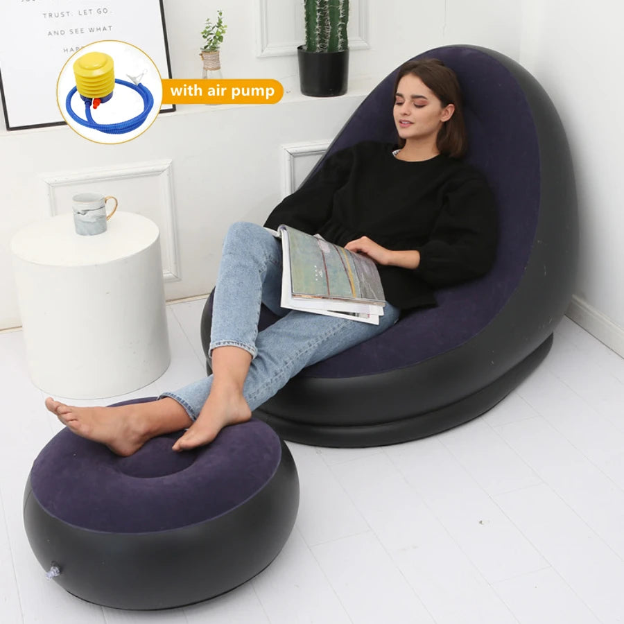 New Inflatable Plush Sofa For Lazy People Foldable Foot Sofa Bed Outdoor Convenient Lying Chair With Feet Bench Hot