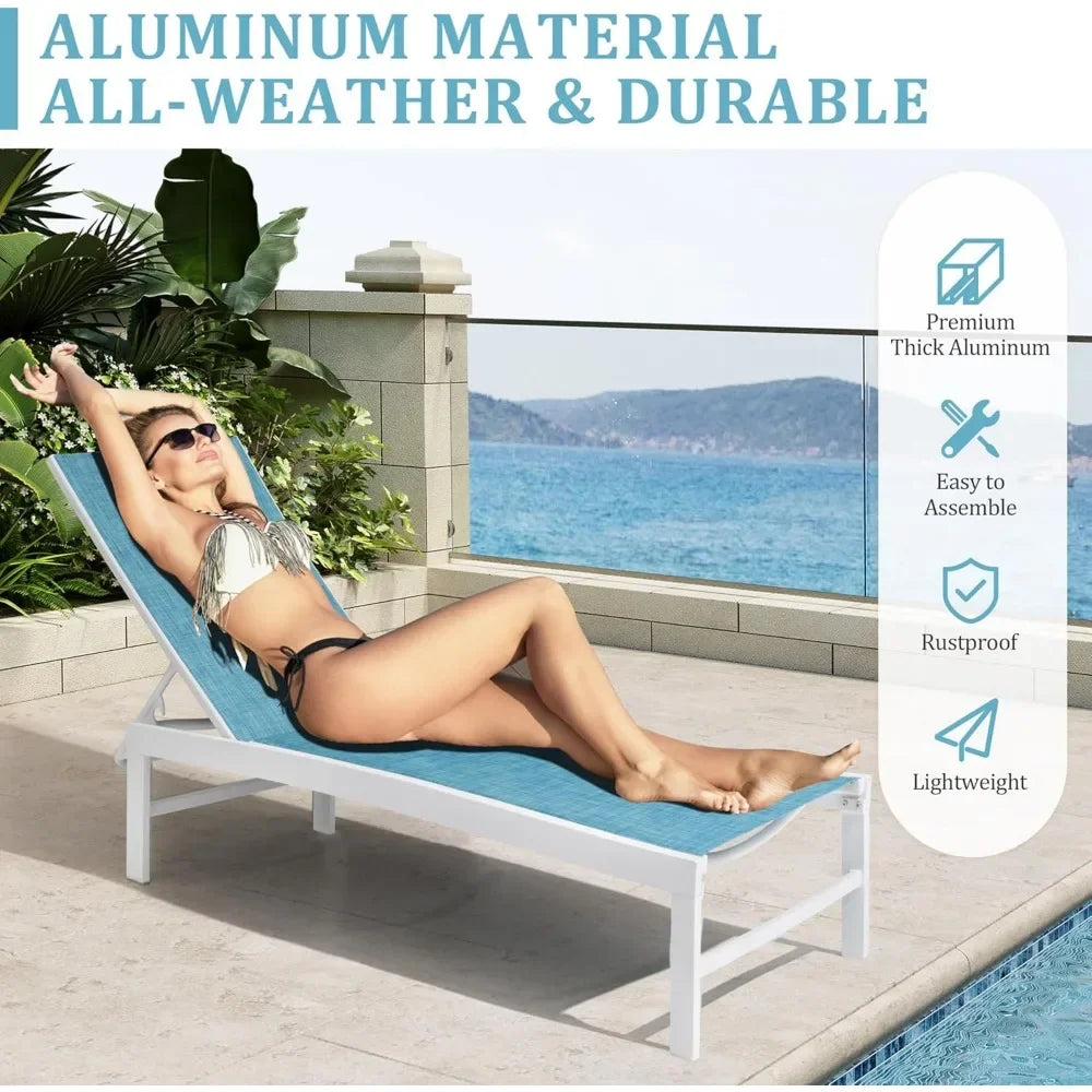 Patio Aluminum Chaise Lounge Chair, Set of 4 Outdoor Recliner Lounge Chair Sun Loungers, All Weather Chaise