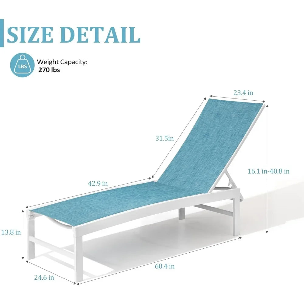 6 Leisure Modes: Each outdoor chaise has 5 preset backrests and 1 flat reclining position, so you can adjust the backrest angle according to your habit and enjoy your leisure time.