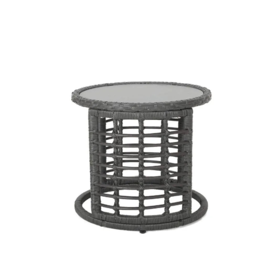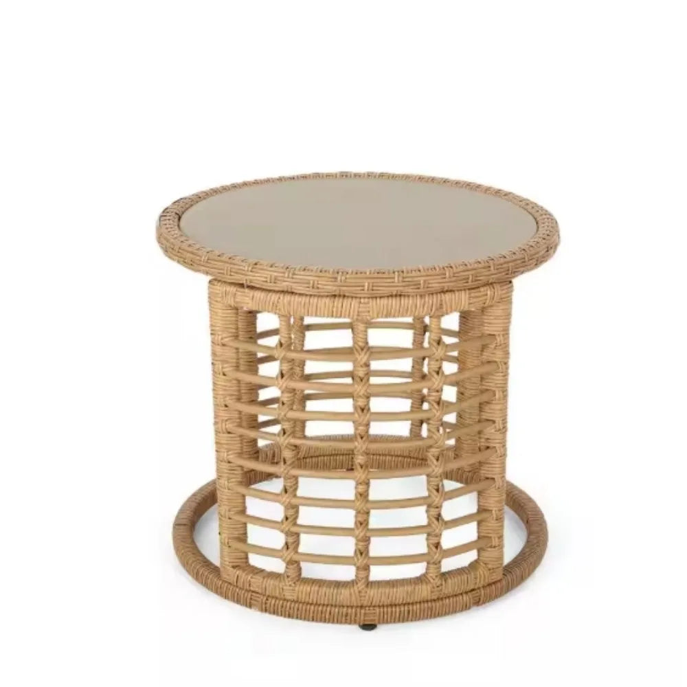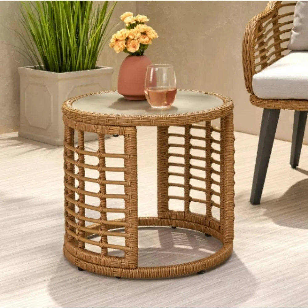 Summer days aren't complete without a chilled drink to keep you cool and you can bring home our stylish side table to keep your drink conveniently on hand. with its charming drum design and smooth wicker finish, this end table is an excellent sidekick to your outdoor furniture, ideal for holding a tray of snacks or a cool pitcher of lemonade. Featuring a steel frame and edgy modern boho design, our side table will keep your patio in style all summer long.