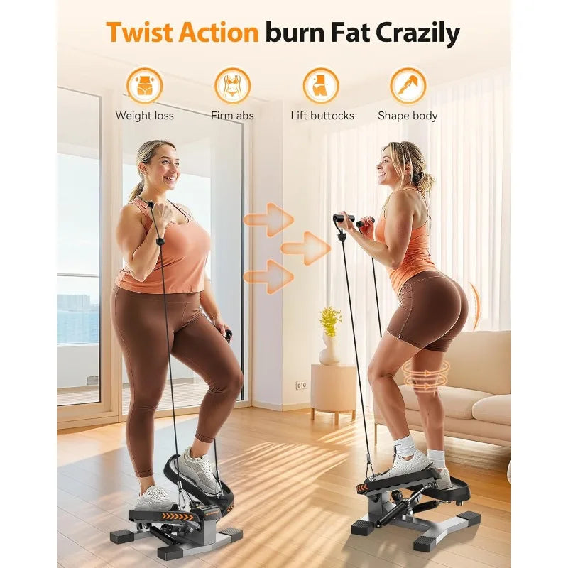 - 【Twist Stepper with Resistance Bands】Twist action helps you tone thighs and buttocks, while achieving a challenging cardiovascular workout. Resistance Bands work arms, chest, back, and shoulders for total body workout. Perfect for weight-loss, body-shape,and daily exercise.