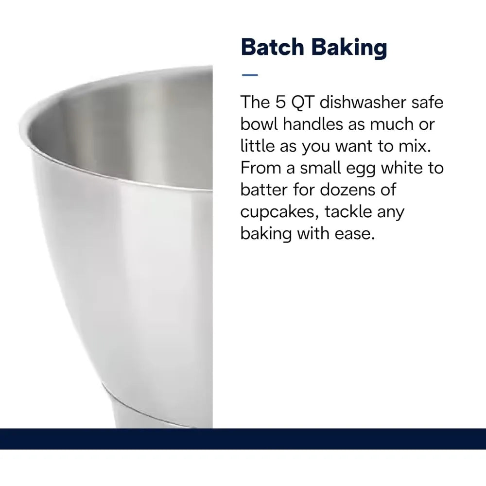 Stainless Steel 5 qt Kitchen Mixer 800W Motor & Electronic Variable Speed Control - Includes Dishwasher-Safe Work Bowl